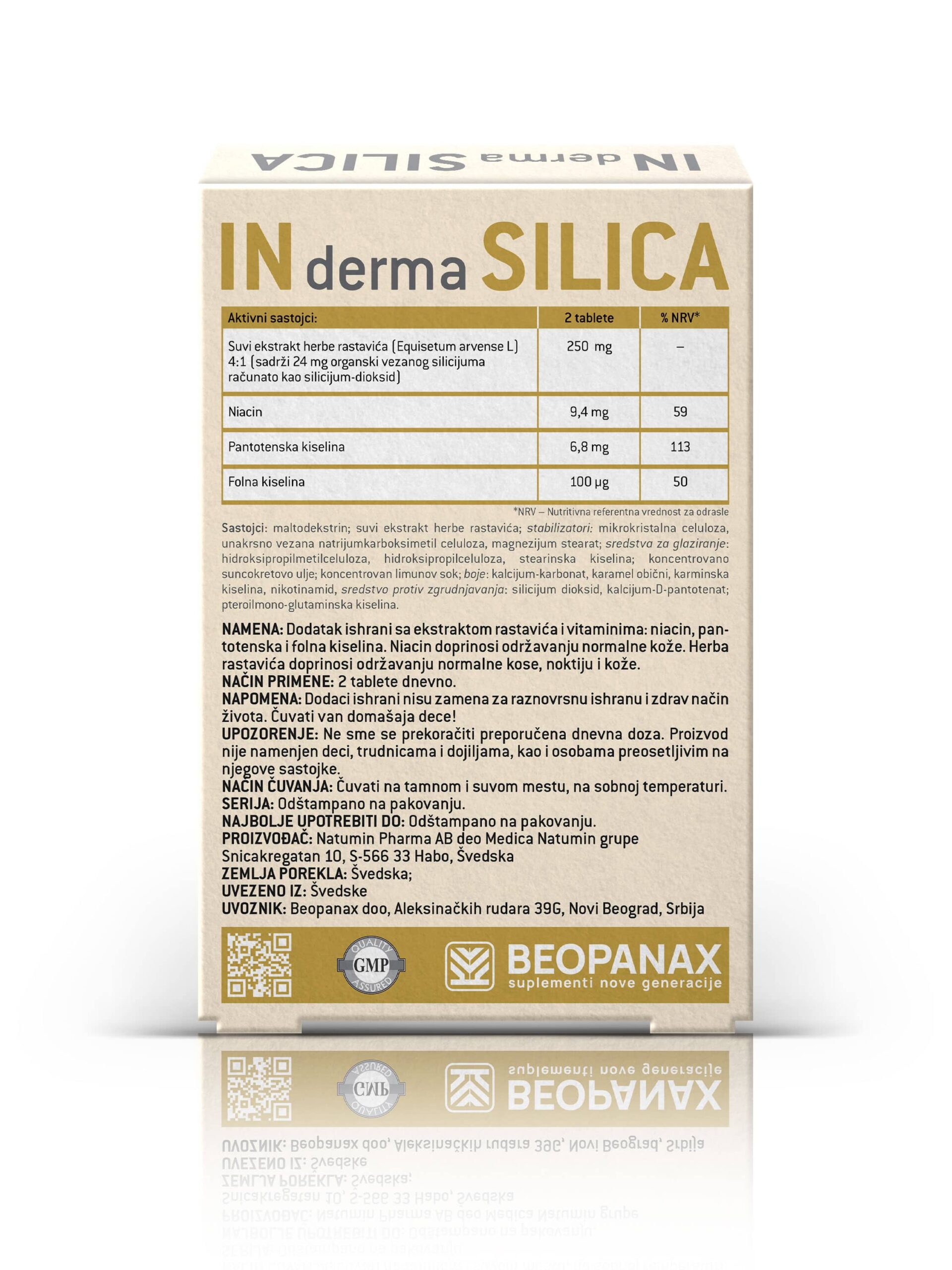 IN derma SILICA, zahvaljujući formulaciji i prirodi svojih sastojaka, u samo jednom preparatu daje punu podršku da prvi utisak koji ostavljaš na druge bude nezaboravan.