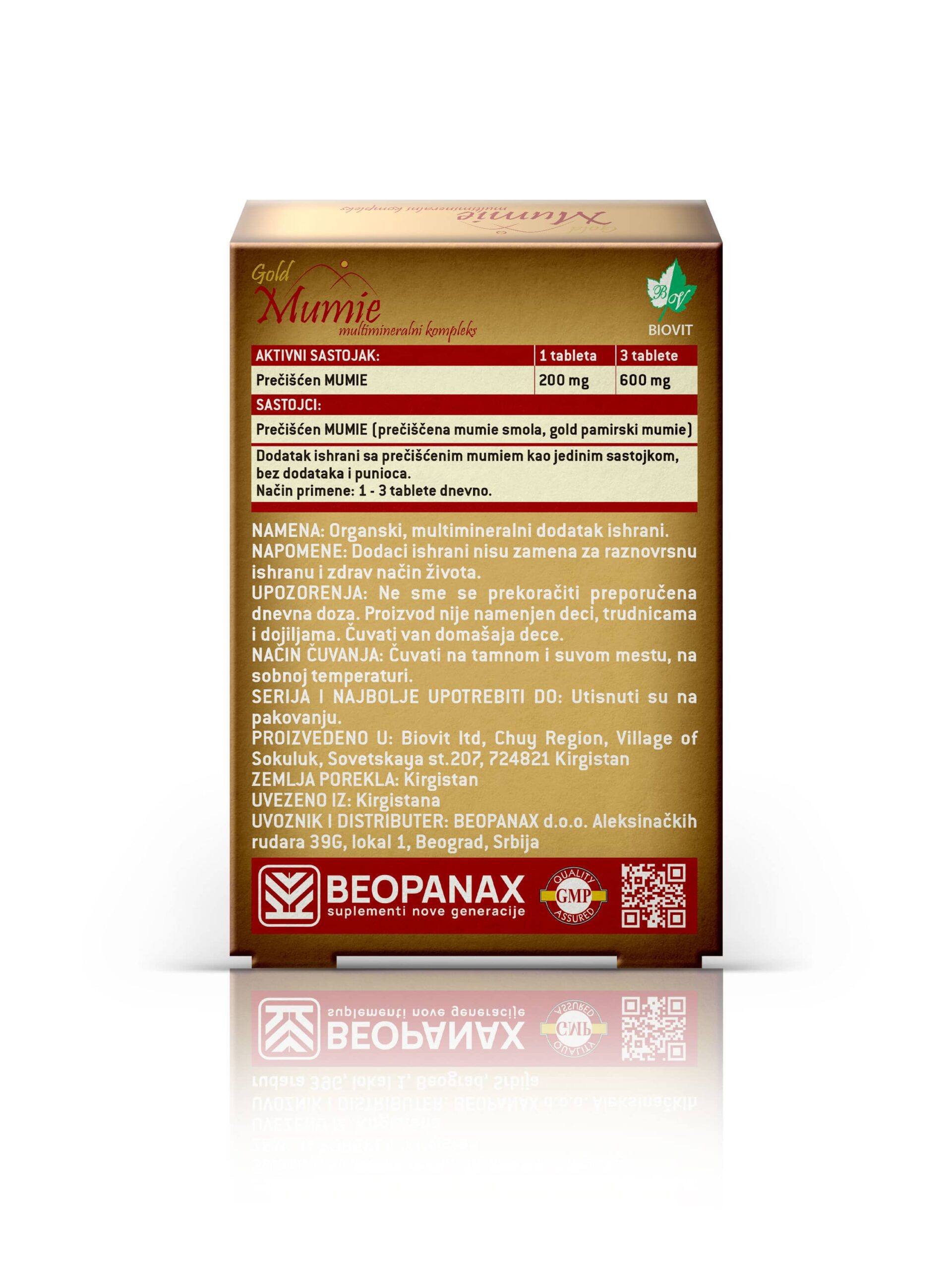 Gold pamirske Mumie tablete su čista prirodna mumie smola, bez dodataka i punioca, što je izvorni oblik ovog čudotvornog suplementa.